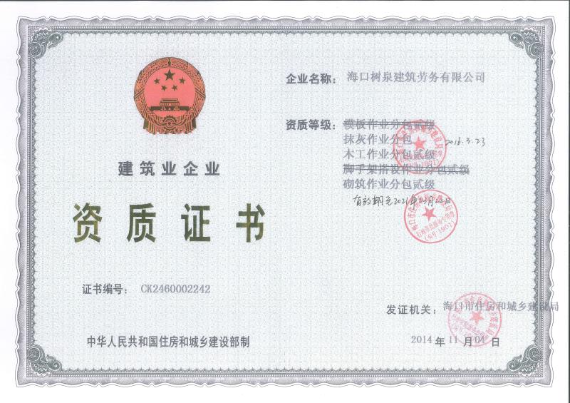 ??跇淙ㄖ趧?wù)有限公司成立于2011年,公司位于??冢淝吧硎且患覍I(yè)建筑施工隊(duì),自2004年即開(kāi)始在海南從事建筑勞務(wù)施工。自成立至今,公司已經(jīng)擁有一支科學(xué)管理、質(zhì)量過(guò)硬、能打硬仗,搶工期的專業(yè)隊(duì)伍。能獨(dú)立承擔(dān)大中型工業(yè)與民用建筑 、室內(nèi)外裝修、各類機(jī)電設(shè)備安裝工程。代表工程有??跒I海華庭、三亞時(shí)代海岸T01/02/04/05棟高層、合肥東?;▓@二期、陵水富力灣B區(qū)高層、三亞金中海(酒店)、瓊海大印經(jīng)典花園、??诃h(huán)球海景大酒店(四星級(jí)酒店,在建中)、陵水珍珠大廈(五星酒店)、海口萬(wàn)達(dá)廣場(chǎng)、美蘭機(jī)場(chǎng)二期。